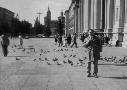 En 1970, aproximadamente, mi tío Antonio (en la foto) y mi padre Luis, por algún motivo que ahora no recuerdo, fueron andando desde Belver, vía Sariñena, hasta Zaragoza, unos 140 kilómetros. Algunas fotos ¿descentradas? lo recuerdan.